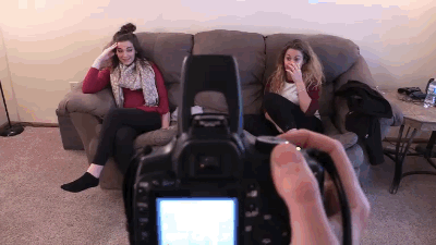 - Both girls sit posed as sleepwalkers while their feet are touched and inspected