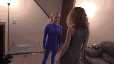 - Both girls must walk through the room while